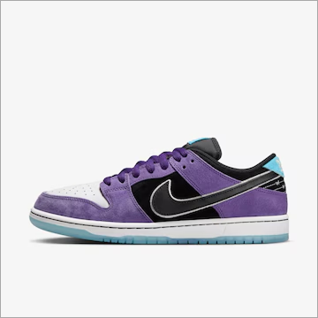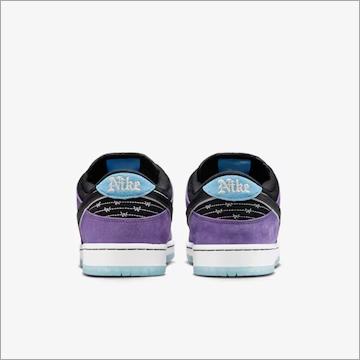 Com uma mistura de roxo ousado, flash de tatuagem e sombreamento detalhado, o Hayley Dunks combina linhas fortes com tons suaves. As próprias tatuagens de Hayley inspiraram grande parte da arte. E se você levantar a língua, encontrará seu slogan característico "você acha". Feito com nobuck e couro premium, o Hayley Dunks usa linha reativa à luz UV que muda de cor ao sol ao redor dos logotipos Swoosh e das abas do calcanhar. Bordado de arame farpado, solas semitranslúcidas e três conjuntos de cadarços com Pontas de renda contrastantes finalizam o design para trazer um toque personalizado e refinado.